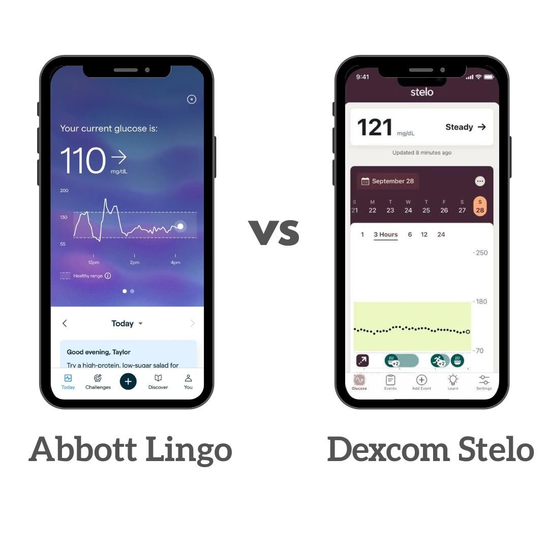 Side-by-side comparison of Dexcom Stelo and Abbott Lingo